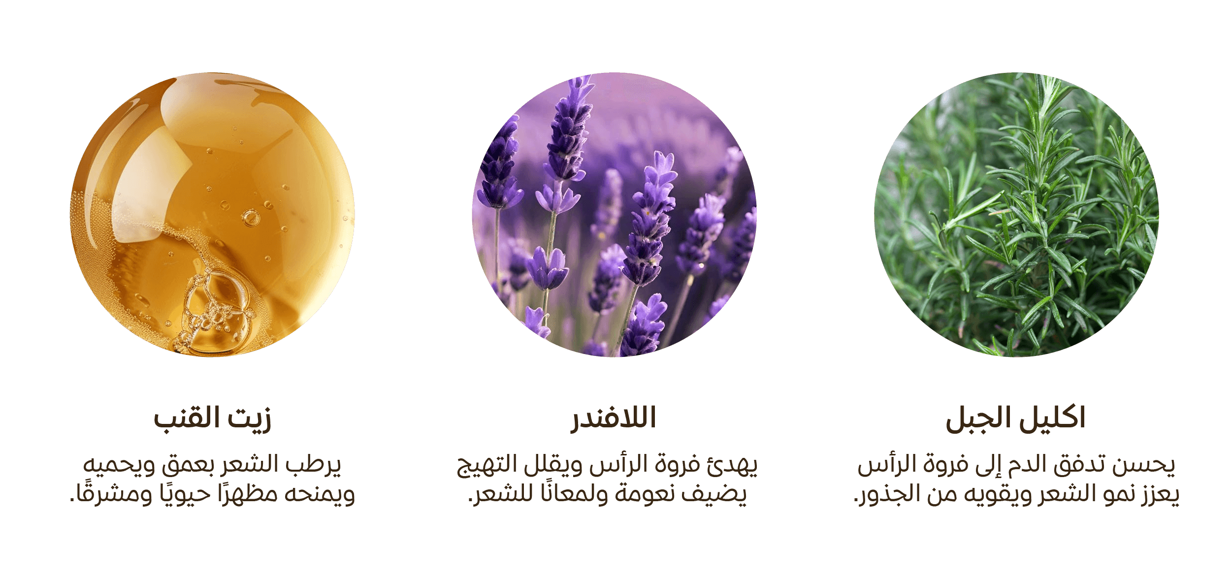 تركيبة غنية بزيوت طبيعية مثل اللافندر وإكليل الجبل.