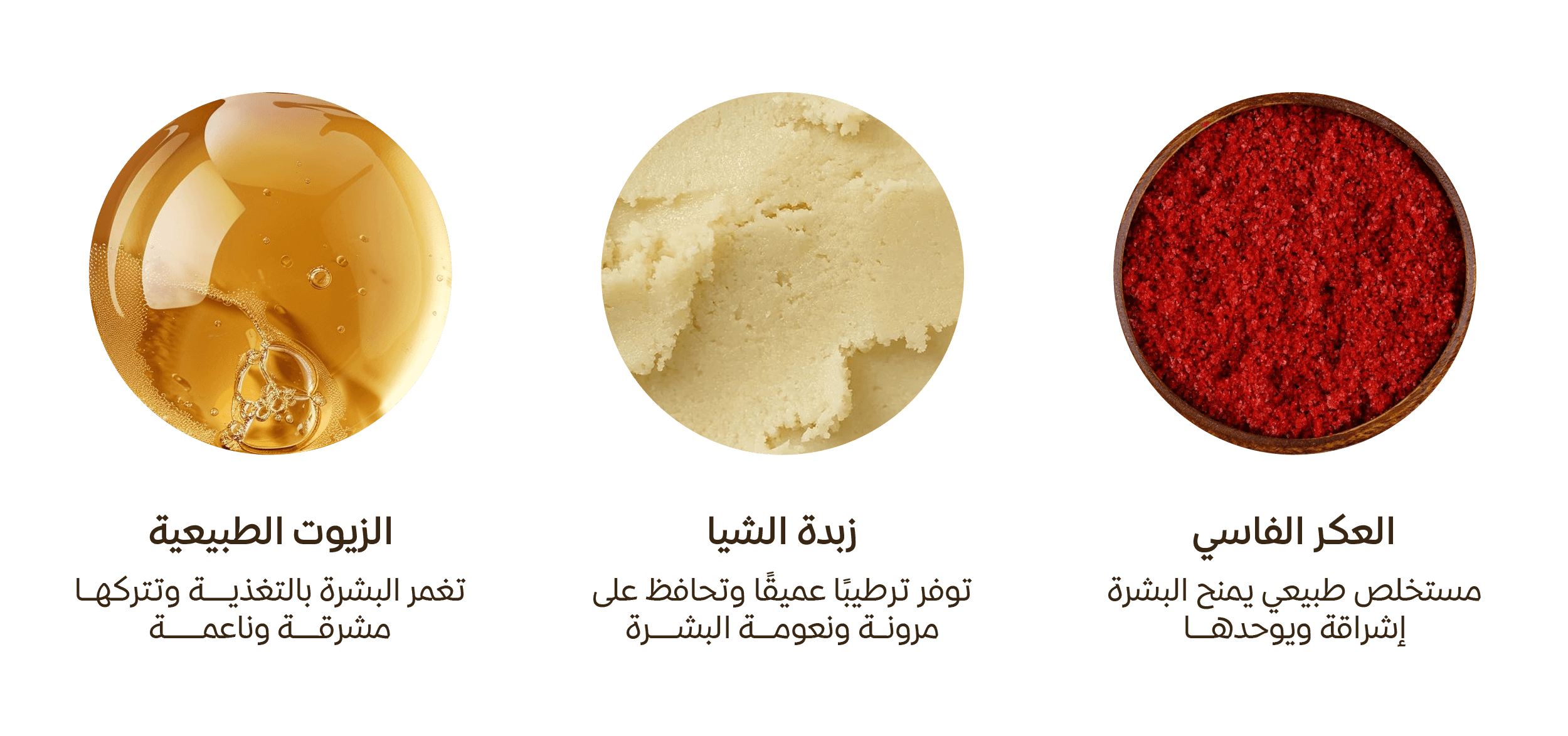 يعمل العكر الفاسي على تحسين لون البشرة الطبيعي ومنحها إشراقة وردية جذابة.